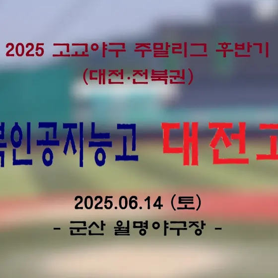 <📣 주말리그 중계 예고>⏰ 2025. 06. 14 (토) 12 : 00🆚 전주고🏟️ 군산 월명야구장✅ 생중계 예정<📣 주말리그 중계 특별편성>⏰ 2025. 06. 14 (토) 14 : 30🚩전북인공지능고 vs 대전고🏟️ 군산 월명야구장✅ 생중계 예정*14일 첫 경기인 <대전제일고 : 군산상일고> 경기는 대전제일고 야구부 유튜브 채널에서 시청하실 수 있습니다. <25년 대전 제일고 야구부>youtube.com/channel/UCwmHEcIV...