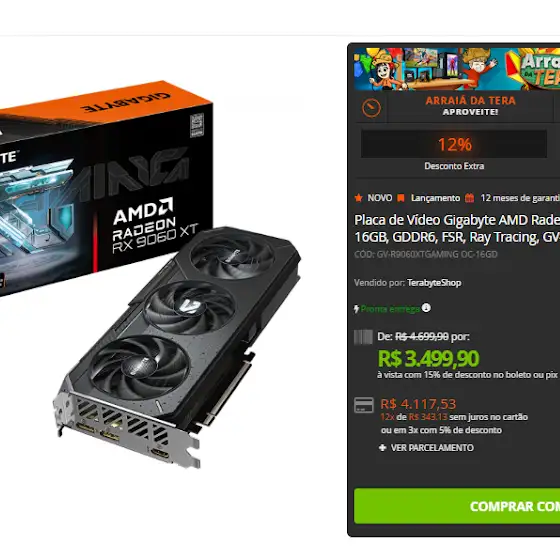 ✨ Placa de Vídeo Gigabyte AMD Radeon RX 9060 XT Gaming OC 16GB GDDR6 ✨