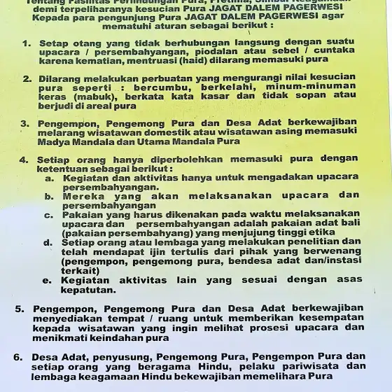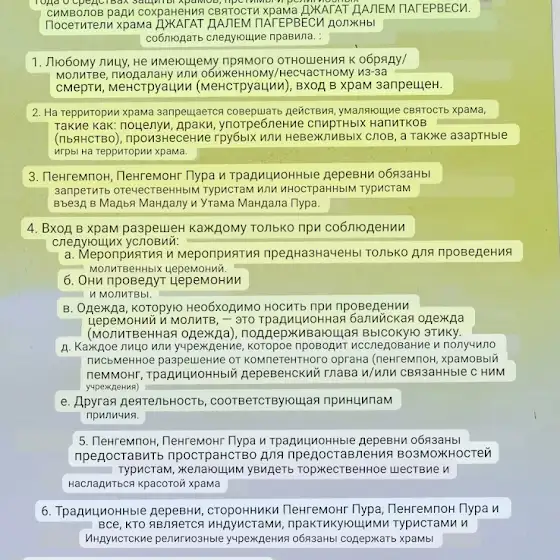 Правила посещения балийского храма JAGAT DALEM PAGERWESI