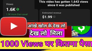 Shorts 1000 Views Par Kitna Paisa milta hai | How Much money youtube par for 1000 Views | shorts par