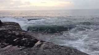 Big waves during sunset at Tanah Lot Beach, Bali
