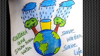 Easy drawing for save water for kids // save water save life drawing for school drawing competition.