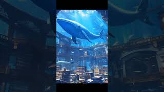 A majestic blue whale glides silently over an ancient underwaterlibrary#viralvideo #trending #shorts