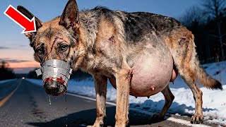 💔Una perra pastor alemán preñada con la boca sellada con cinta adhesiva, incapaz de comer o respirar