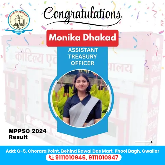 We are proud to share that our dedicated students have achieved remarkable success in MPPSC 2024! This achievement reflects their hard work, determination, and the expert guidance provided by Kautilya Academy.