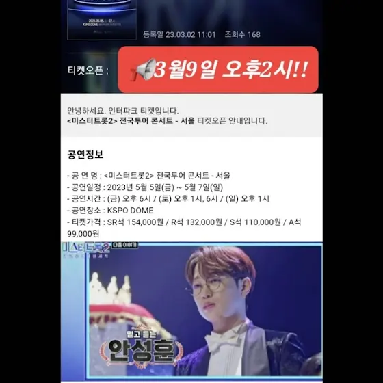 📢3월9일 목요일 오후2시!! 미리미리 콘서트 티켓 선점하시는 행운 놓치지 않으시길 응원합니다!!^^