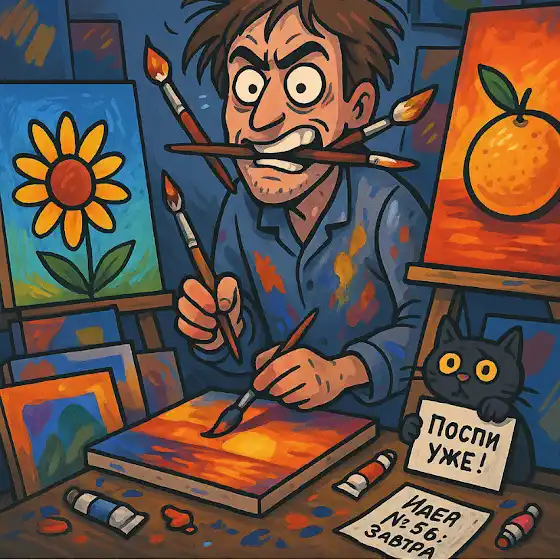 - Может писать натюрморт утром, пейзаж - вечером, абстракцию - ночью.