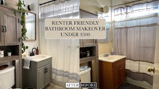$300 RENTER FRIENDLY BATHROOM MAKEOVER | DIY MIRROR WOOD FRAME