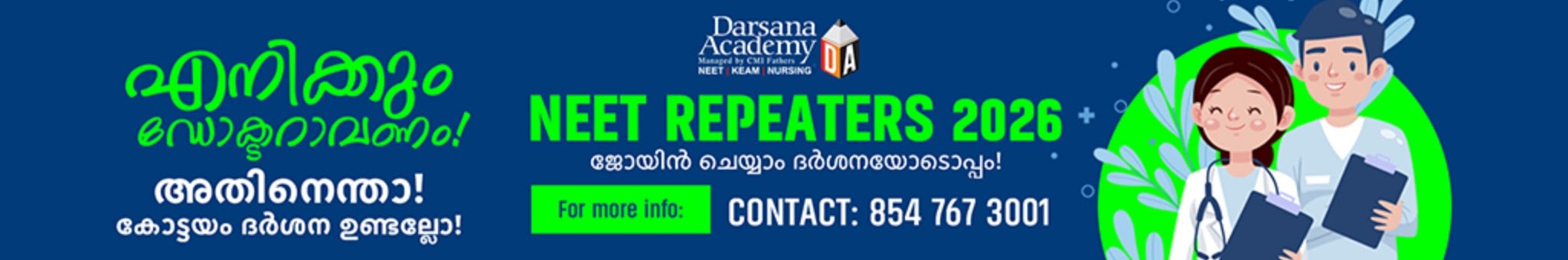 Darsana Academy, with the three decades of experience in the field of Medical/ Engineering entrance coaching, secured three state first ranks and produced hundreds of Doctors and Engineers, including NIT’s and IIT’s. We provide 10-100% scholarships to the students who have the aptitude to serve the nation as Doctors and Engineers or in the field of para medical sciences. We CMI fathers follow the mission and legacy of St. Chavara, for the total wellbeing of the people.