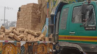 Hino Truck Bricks Unloading By Workers