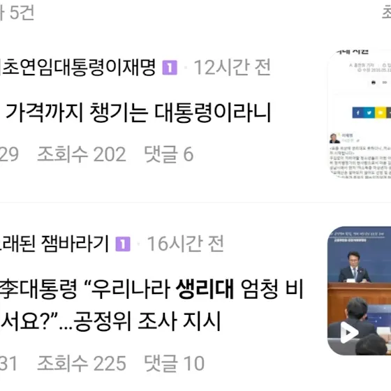 그러더니 이재명은 어제 물가 관련 보고를 듣던 중 “우리나라 생리대가 그렇게 비싸다고 한다. 조사해주면 좋겠다.”고 말했다. 이 소식에 ‘재명이네 마을’ 개딸들은 감격하며 “생리대 가격까지 챙기는 대통령”이라며 환호한다.