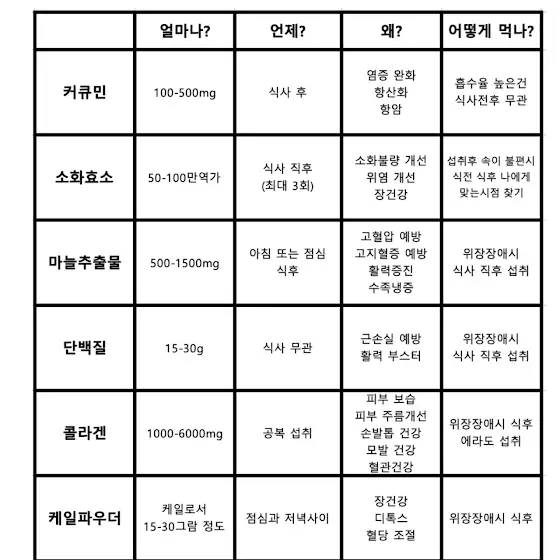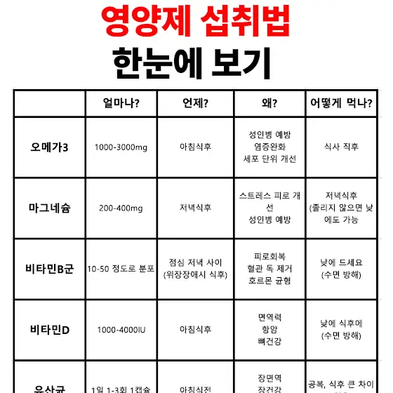 영양제 섭취법 한눈에 보기