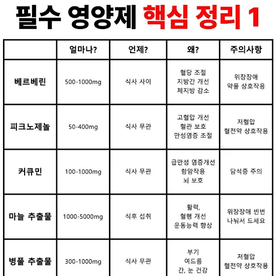 중요 영양제 효능 효과 섭취방법 주의사항 정리저장해두시고 활용 하시면 도움이 되실 겁니다추가적인 궁금증 있으시면 댓글 주세요. 감사합니다. 😁😁