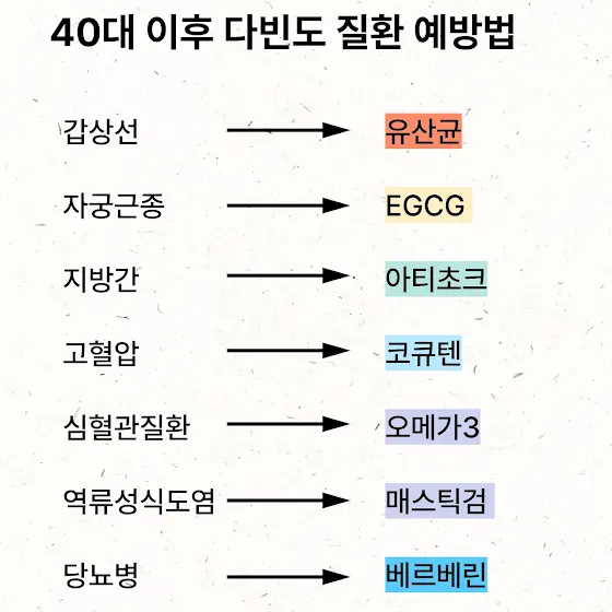 40대 이후 다빈도 질환 개선 영양제와