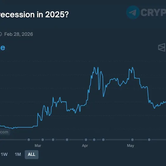 Из интересного - лудики на полимаркете (обычно не сильно отличаются от лудиков за торговым терминалом) существенно снизили свои ставки на рецессию в США в 2025 году