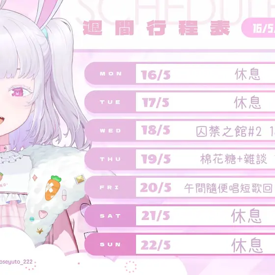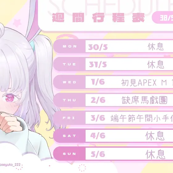 ✨這個是Yuto本週的行程✨ 【🍬5月30日至6月5日🍬】 #Vtuber #中文Vtuber #香港Vtuber #HKvtuber #MomoseYuto
