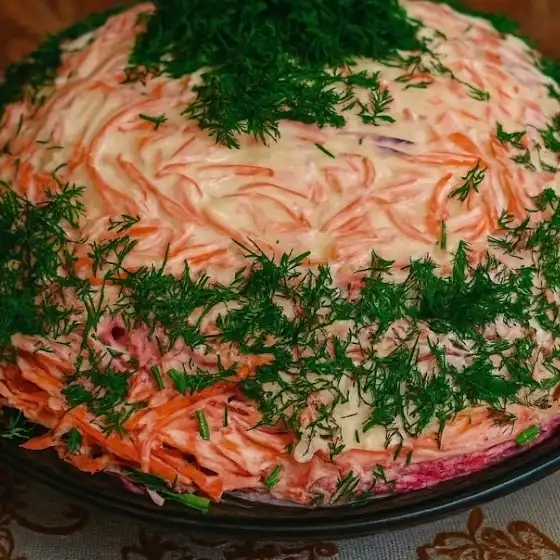 - оставшуюся свеклу и сверху тонко смазать майонезом.