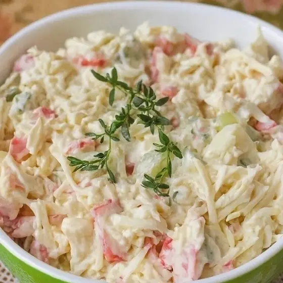 Крабовый салатик с огурчиками и плавленым сырком к празднику