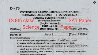 TS 8th class Science 2 SA 1 paper October 2023 Telangana Biological Science 8th class SA1 papers SSC