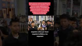 PREDICADOR REDUCIDO POR POR POLICIA Y PERSONAS CUANDO EMPEZARON A A PREDICAR CONTRA LAS IMAGENES