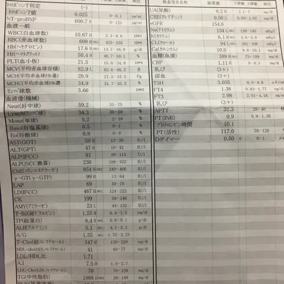 31歳で心臓の血管2/3詰まって星になりかけてた時の検査結果