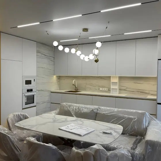 Люстры тоже уже приехали, но потолок еще не готов. Поэтому полную картину покажу позже, не пропустите!
