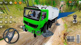12 Wheeler Bharat Benz Stones Transport Truck Driving In Dangerous Offroad | Bus Simulator Indonesia
