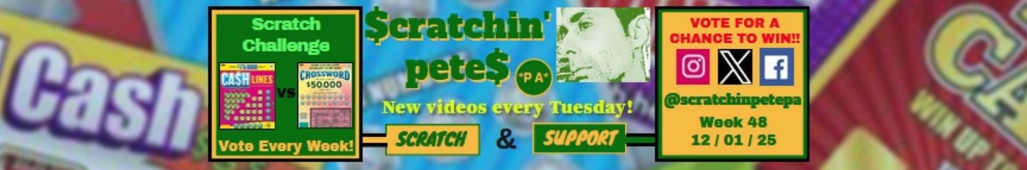 This is my Scratch Challenge!!! My mission on Scratchin' Pete *P A* is to find out if I can make a profit by scratching lottery scratch cards over a period of one year. I scratch a ticket every Tuesday and keep track of every 'win' & โloss' through out the year!