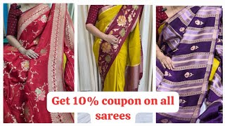 GET 10% COUPON ON ALL SAREES| RAW SILK,RAW MANGO,MUNGA SILK,GEORGETTE SAREES| GIVE AWAY | 8688637474
