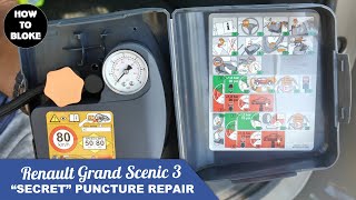 DIY Renault Grand Megane Scenic III "secret" Puncture Repair Kit - temporary fix flat tyre breakdown