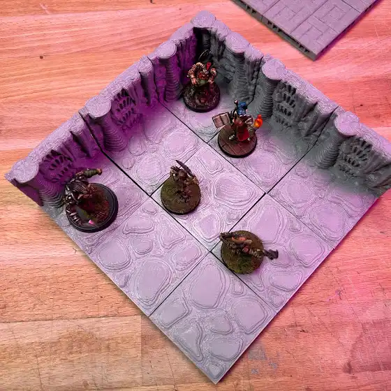 The question came up around how well minis fit on 3D printed terrain. Typically, the answer is it depends. Here's an example of two Printable Scenery systems. The standard walls and floors have full floors with walls added to the perimeter. The cavern tiles include the walls on the floors (at least the version I have). I think this has a lot to do with the goal and what makes the most sense based on the textures and overall vibe.