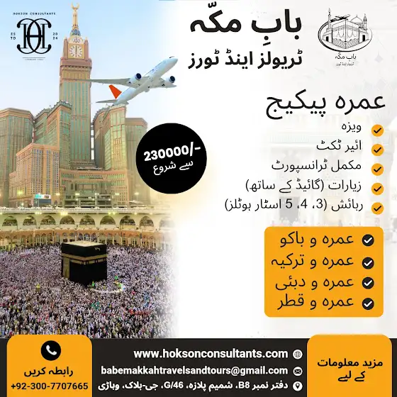 ✨ نشستیں محدود ہیں — آج ہی بکنگ کروائیں! 📞 رابطہ کریں اور اپنے روحانی سفر کو یادگار بنائیں 📞 03007707665 🌐 www.hoksonconsultants.com 📧 babemakkahtravelsandtours@gmail.com
