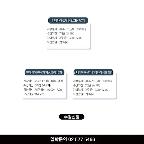 - 수강 신청 후 2025.11.29(금) 대상자 개별 문자 발송합니다. (계좌번호 및 수강 확정 안내)