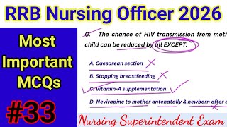 RRB Nursing Officer Exam 2026 || MCQ For RRB Staff Nurse Exam || RRB Nursing Superintendent class#33
