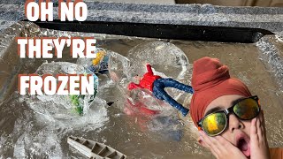Smashing open ice with toys inside
