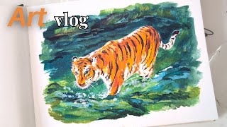 Painting bird in Watercolors in Art Journal - Peaceful Art Vlog Slow Painting Process #art #painting