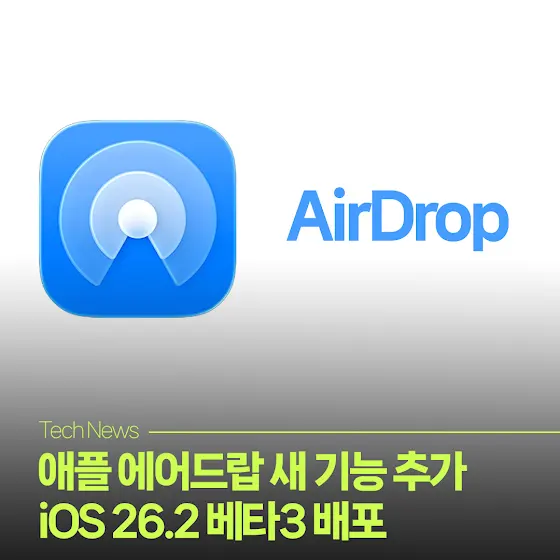 애플 에어드랍에 새로운 기능이 추가된 애플 iOS 26.2 베타3 (개발자 버전)이 배포되었습니다. 이제 에어드랍을 사용할 때 코드를 공유해서 30일 동안 서로 찾을 수 있는 기능을 사용할 수 있습니다. 정식 버전은 12월 배포될 것으로 보입니다.