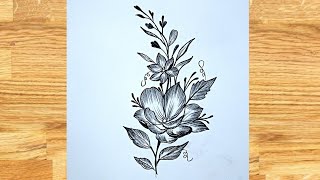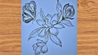 Pencil drawing of Flower with beautiful butterfly / Pencil butterfly Drawing/ Pencil drawing/drawing