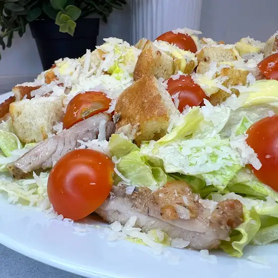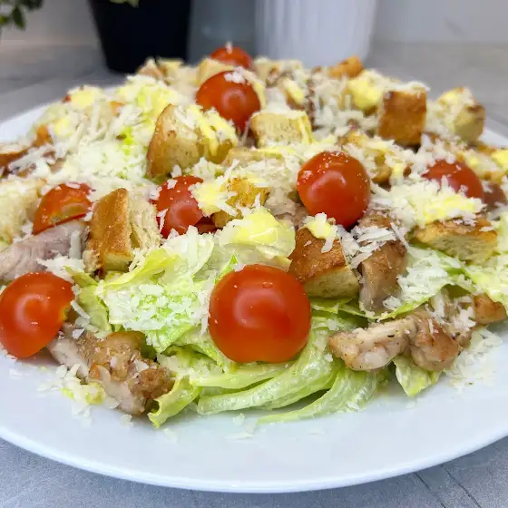 Ваш Цезарь с курицей готов! Подавайте сразу после приготовления, чтобы сухарики оставались хрустящими. Приятного аппетита!