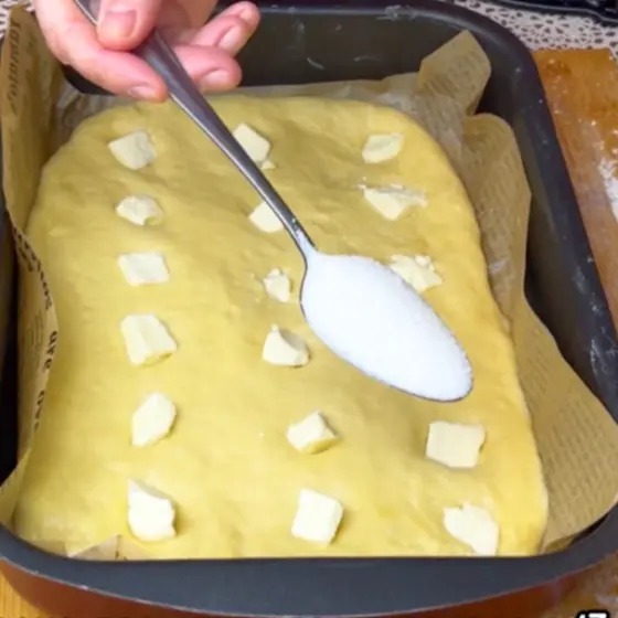 - Равномерно посыпьте тесто сахаром (3 ст. л.).