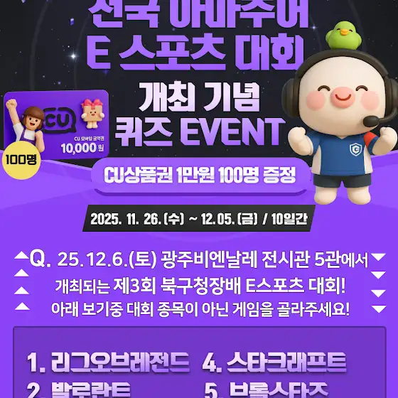 제3회 전국 아마추어 e스포츠 대회 개최 기념 퀴즈 이벤트를 진행합니다🤗