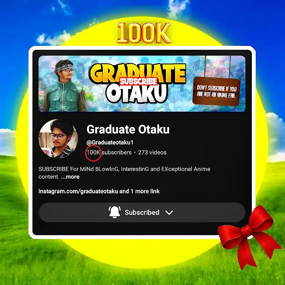 CONGRATULATIONS, | GARDUATE OTAKU | VAI FOR 100K SUBSCRIBER DONE ✅ ❤️ @Graduateotaku1