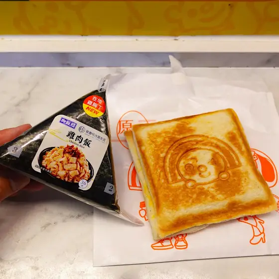 そして最後の最後は桃園空港のセブンイレブンで鶏肉飯のオニギリと大好きなトースト😍最高だったよ😀
