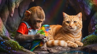 #MonkeyAndCat #OrangeCat #CuteMonkey #AnimalRescue #CatFamily #ForestAdventure #AnimalStories #KidsFriendly #WholesomeAnimals #MonkeyRescue #CuteAnimals #Heartwarming #CartoonAnimals