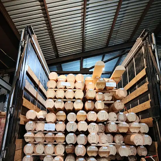 Сибирская лиственница с нашего производства на разгрузке в СБЕР Сити
