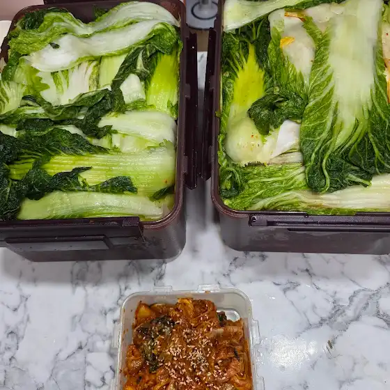 묵은지용 김치 20킬로 담궜어요. 김치통으로 두통 나왔어요. 양념을 갈아서 해 그른가 여튼 올김장 맛나게 잘되어서 뿌듯하네요👍💕🥬 여름에 푹익은 묵은지 꺼내먹음 ㅋ ㅋ 벌써 침이 츄룩 ㅋ겨울 건강하게 보내세용💕