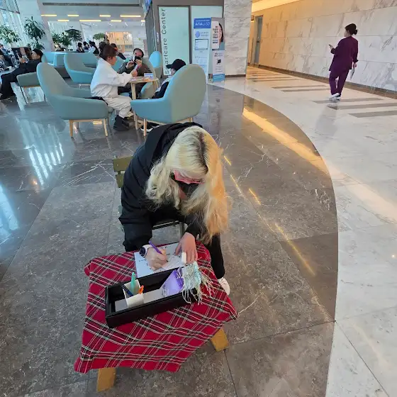 오늘 언니 병원 오는 날이라서 왔는데 트리에 소원을 적는게 있어서 가족들 모두 건강하게 해달라고 빌어서 적었다👍😍☕️언니랑 자주가던 투고로스트 카페도 가보고 즐겨먹던 오렌지라떼 👍