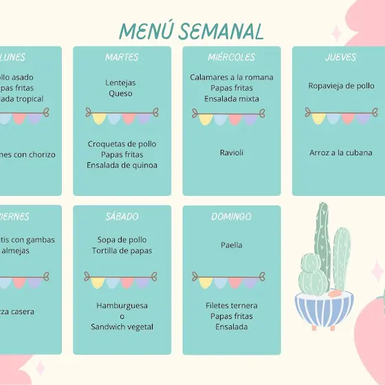 Feliz domingo, chicas 🤗☀️🌈, les dejo por aquí nuestro MENÚ para la PRÓXIMA SEMANA, por si les ayuda a coger alguna ideíta 🥰. Son platos sencillitos para animarnos a cocinar con este calor 😅. También incluyo platos de cuchara, que en mi casa se cocinan todo el año 😋🏡.