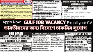Gulf Job Vacancy 2023 //Abroad Job Update for Indian//Dubai_Oman_Kuwait_Soudi_Qatar_Bahrain Job News