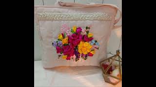 EMBROIDERY with #RIBBON ON #JUTE CLUTCHS... #Handmade#short#beautiful #bags#youtube